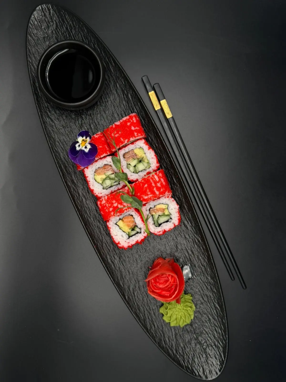 Калифорния креветка Состав: -рис 130гр -креветка 26/30 30гр -авокадо 20гр -Огурец 20гр -Яки соус 10гр
