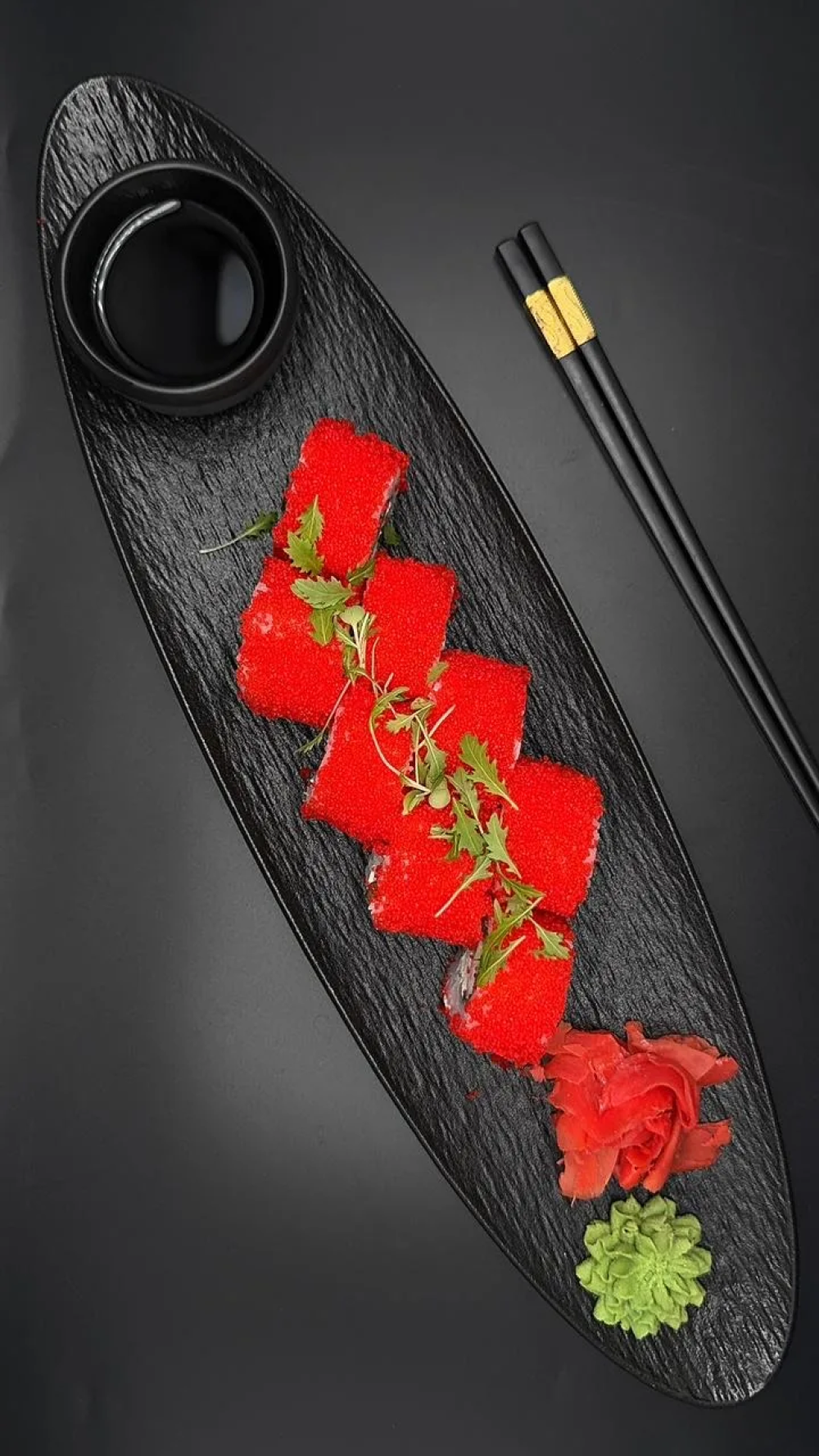 Ролл Самурай Состав: - рис - сыр креметте - нори - огурец - креветка тигровая - икра масаго