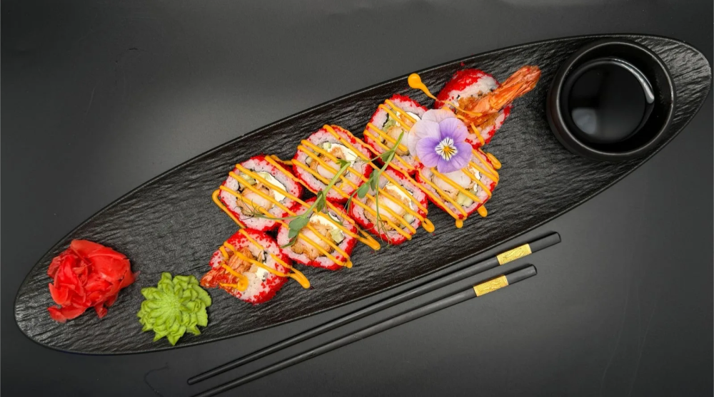 Ролл Окинава Состав: - рис - сыр креметте - нори - креветка в кляре - спайси соус - огурец - икра масаго