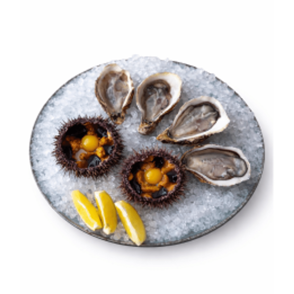 Состав: Устрицы Маака размер М - 4 шт Морской еж - 2 шт Дольки лимона