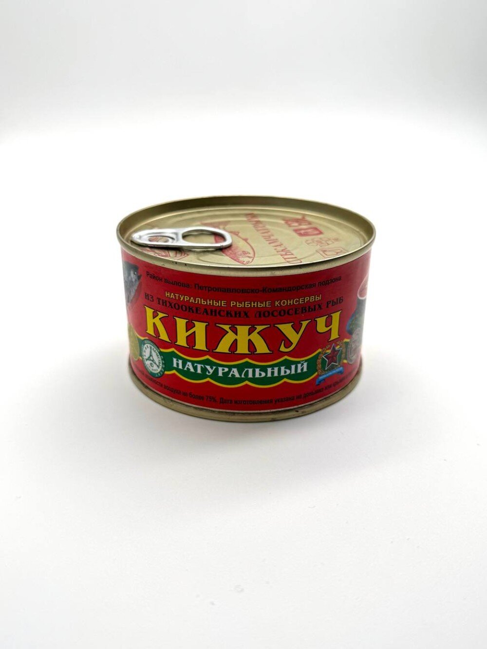 Кижуч натуральный 227г ж/б от ООО «Устькамчатрыба» - это консервы из тихоокеанского кижуча, произведенные по ГОСТ 7452-97, содержащие только рыбу и соль.